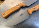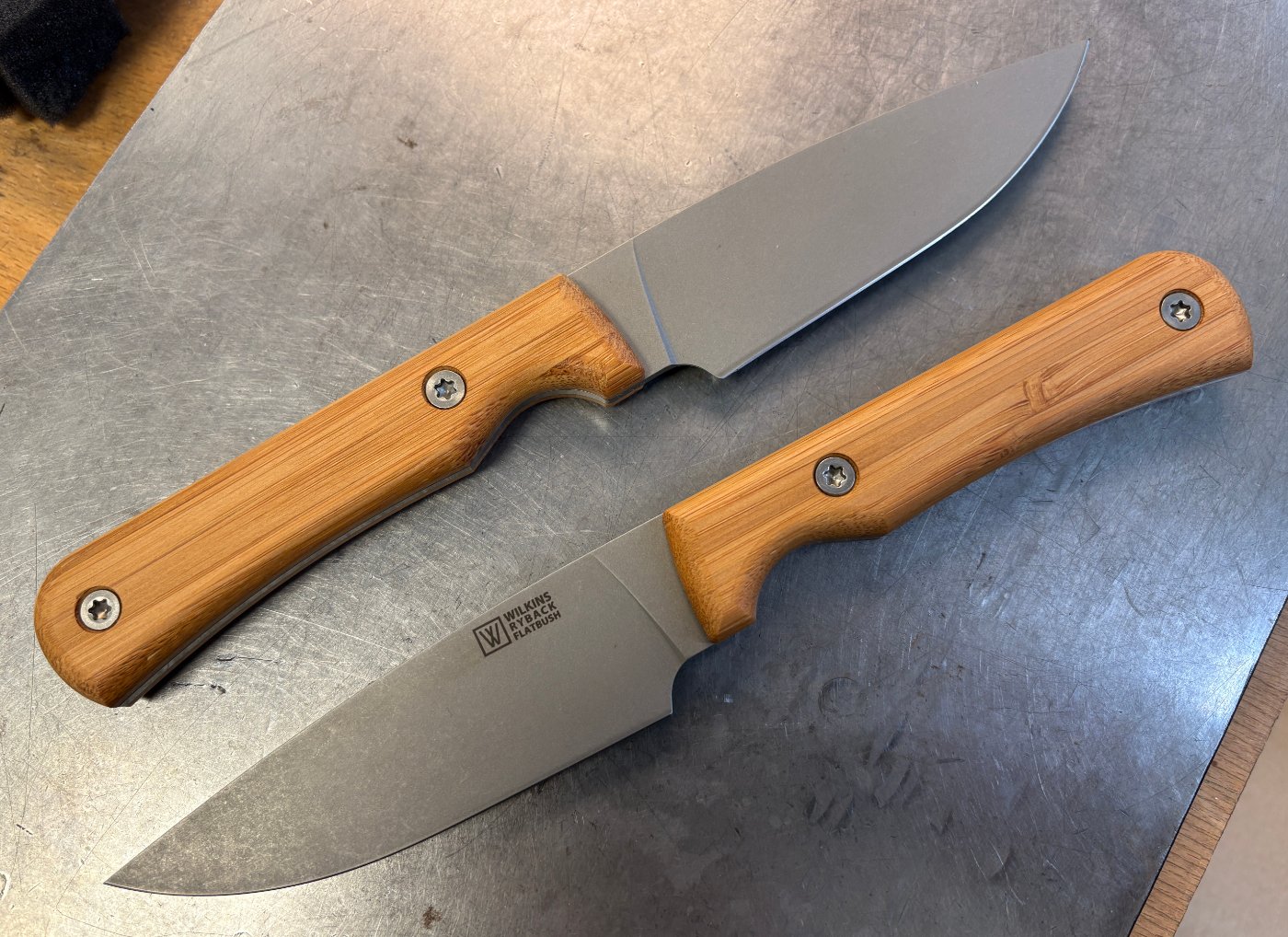 Grips are precision machined from Textured G10 in your choice of Black, Olive, Orange or Red as well as a few knives with hard Bamboo grips, all secured with a hidden stainless pin, threaded brass inserts and 4 stainless Torx screws. The Bamboo grips are slightly thicker than the G10 grips and won't fit the Kydex sheaths. For this reason the Bamboo version is only for sale without a sheath.