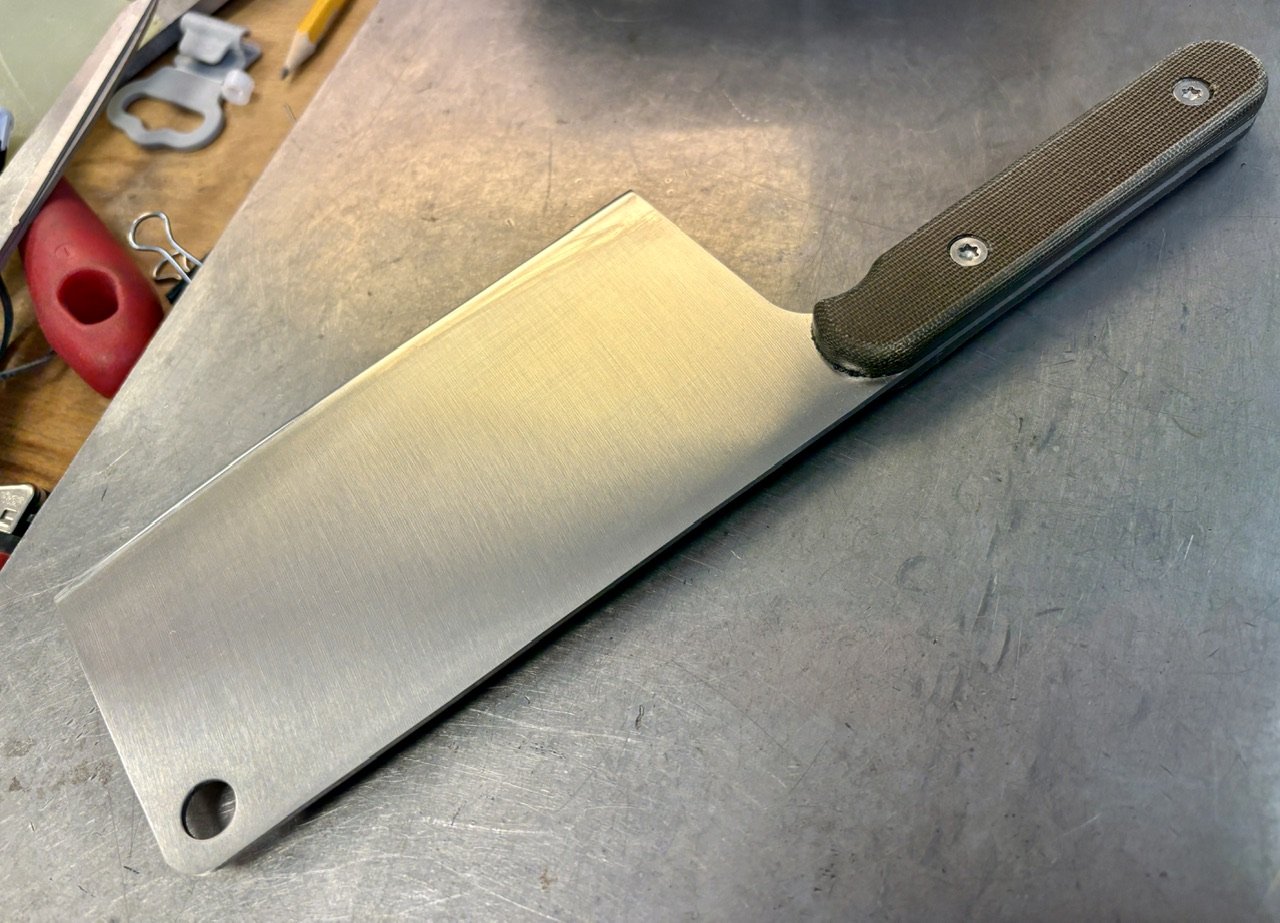 I call this run (semi) Production because I produced the blanks in my shop and sent them to a vendor in Solingen (2 vendors actually, it's a long story) where they were ground on automatic grinders. Final finishing as well as making and affixing the grips was all then done by me in my workshop. The Snack Chopper is very sharp, use extreme caution when handling these cutting tools.
